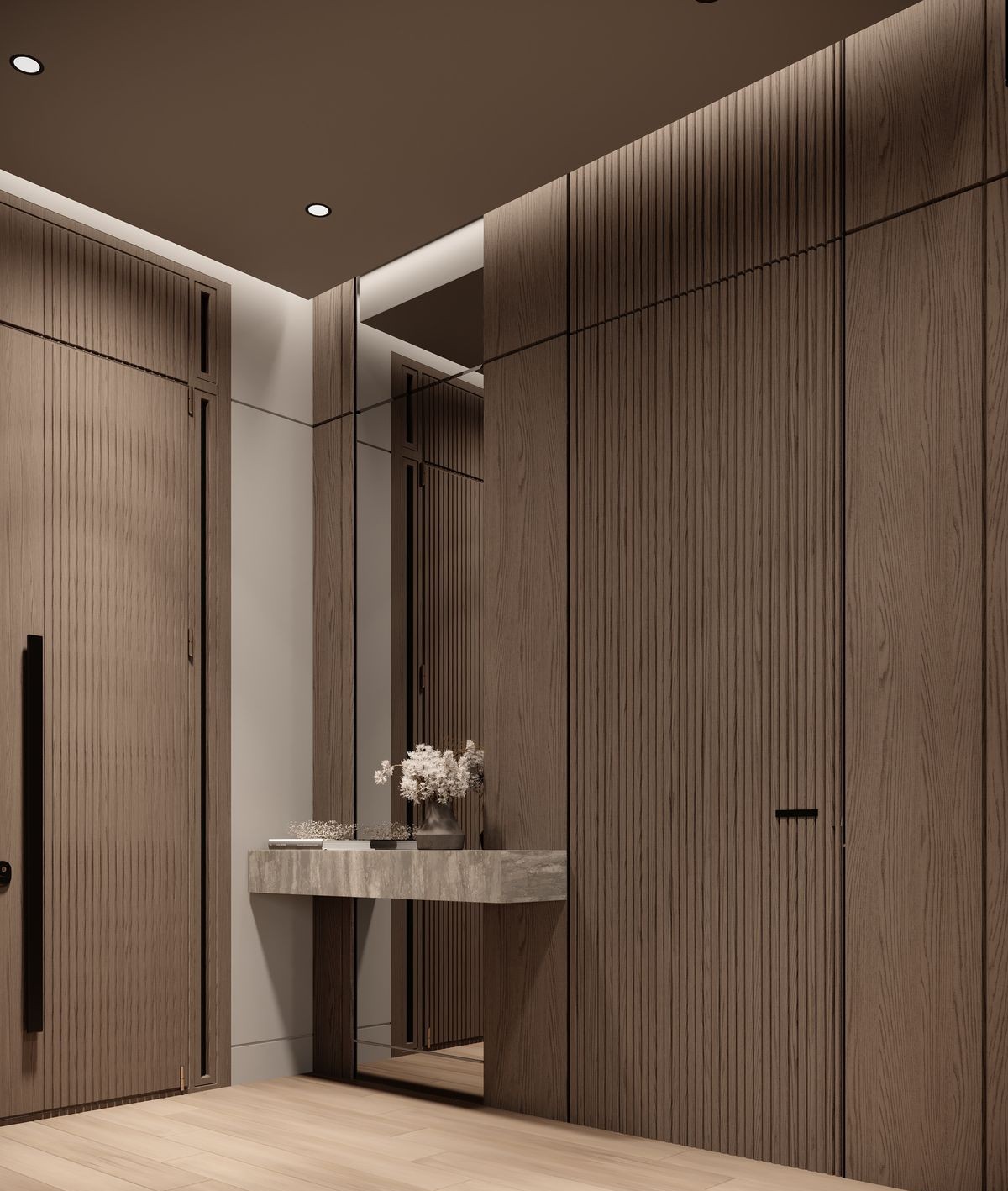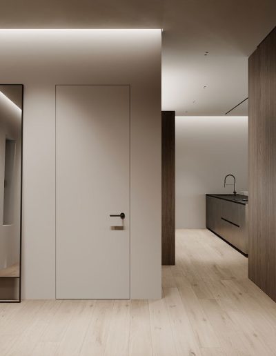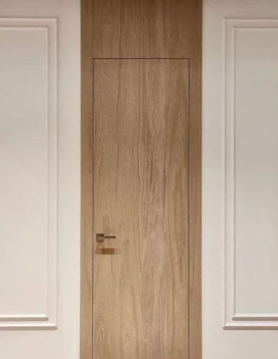 Se trata de un concepto arquitectónico pensado para crear espacios modernos, exclusivos y sofisticados, donde la puerta queda oculta e integrada en la decoración, aportando un efecto visual de amplitud y pureza estética.