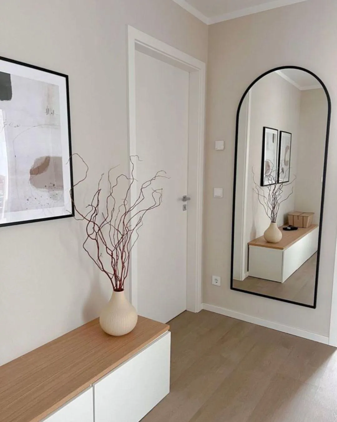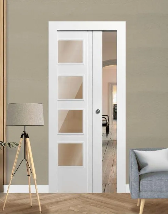 ✅ Sistema abatible sin tapajuntas – continuidad absoluta entre pared y puerta.